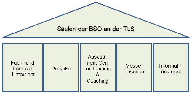 Da die Theodor-Litt-Schule ihrer Profession nach eine berufsbildende Schule ist, werden die Schülerinnen und Schüler von Beginn an in die Grundstrukturen der Berufs- und Arbeitswelt eingeführt. Dabei sind die wichtigsten Säulen der BSO an der Theodor-Litt-Schule im „Haus der Berufs- und Studienorientierung“ zusammengefasst.