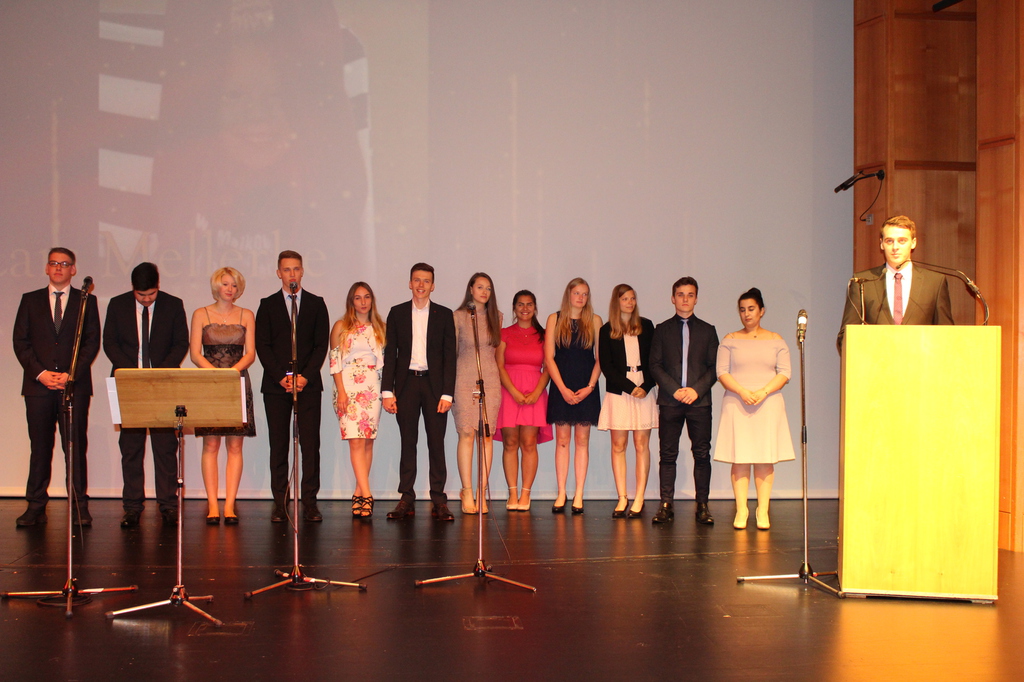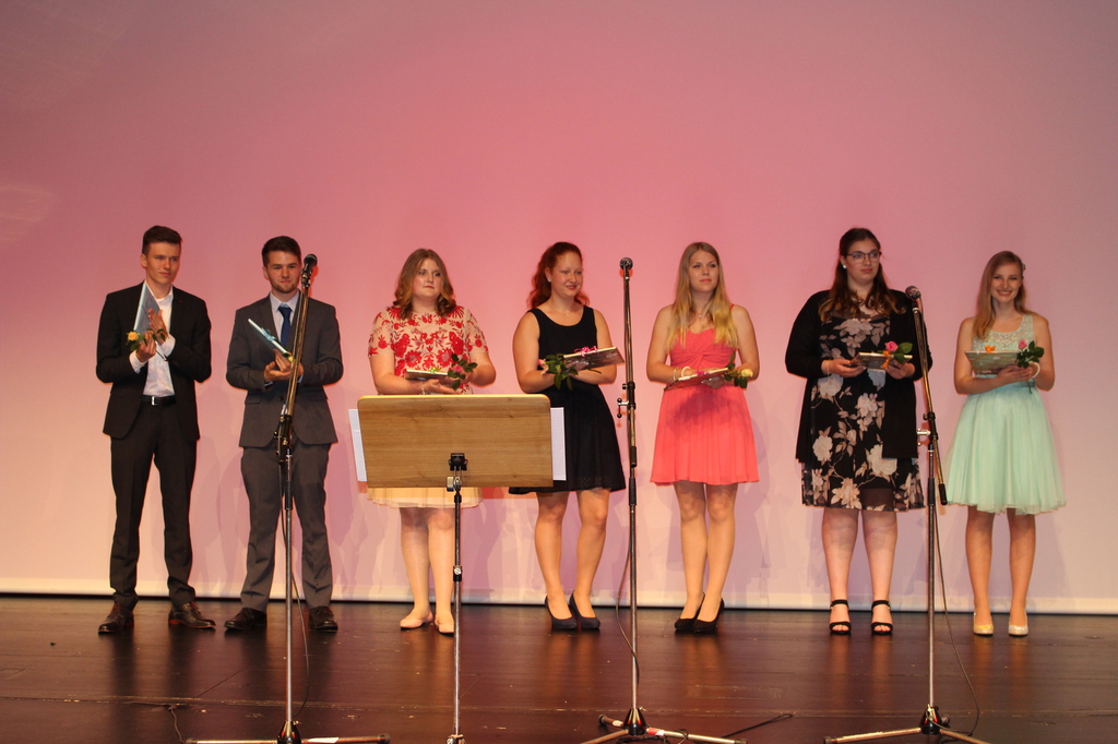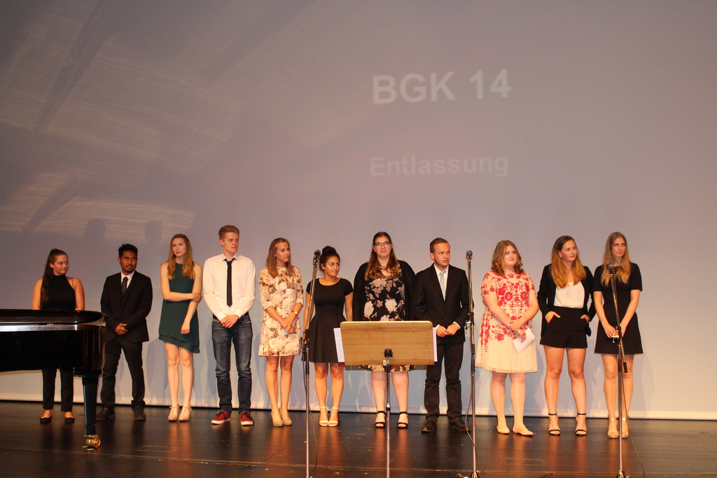 Am 30.06. fand die Entlassungsfeier der 60 Abiturientinnen und Abiturienten des Beruflichen Gymnasiums der Theodor-Litt-Schule im Theater in der Stadthalle einen würdigen Rahmen. Musikalisch untermalt wurde die Feier sowohl durch unsere Schülerinnen und Schüler Marina Bartz (Flügel), Sarah-Luise Petersen (Gesang) und Till Engelmohr (Gitarre) als auch durch unseren Fremdsprachenassistenten Curtis Rabe (Gesang).