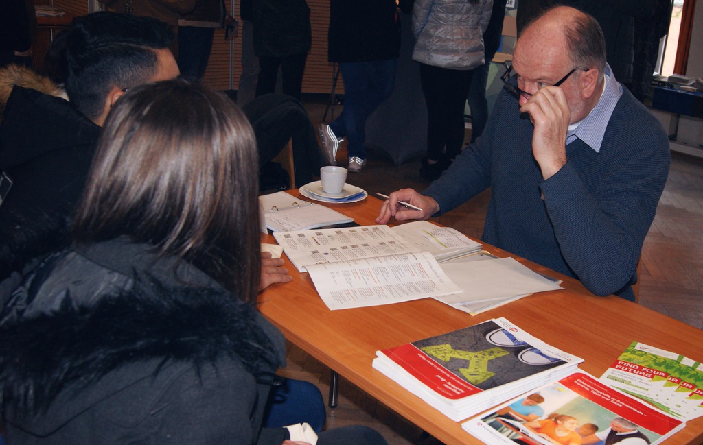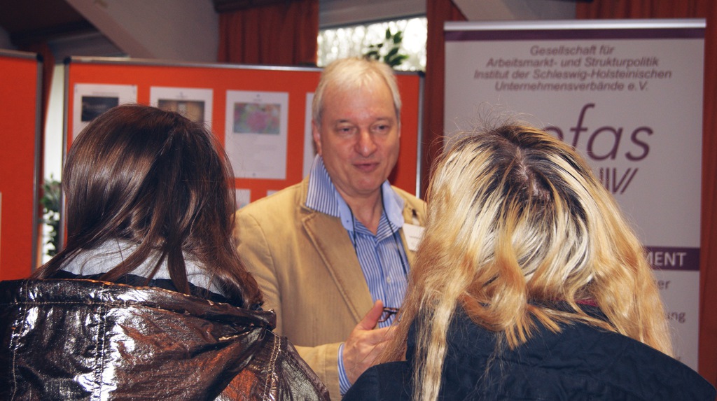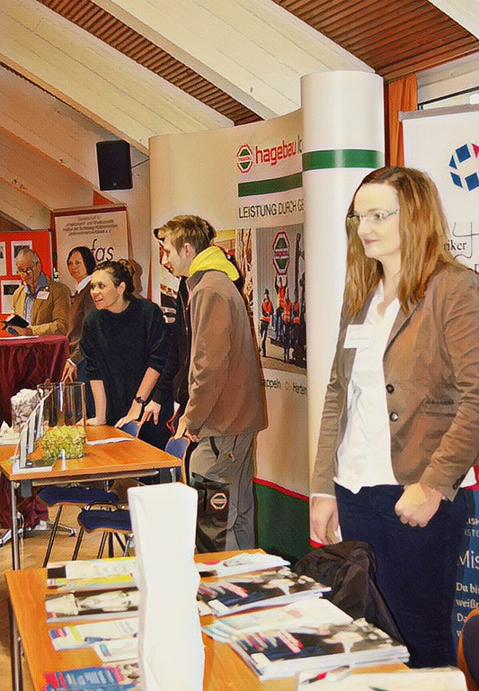 Gegenüber, beim Stand der JBA und des Jobcenters, wurden derweil intensiv Beratungsgespräche mit Frau Grimm und Herrn Wietzke geführt. Man terminierte weitergehende Gespräche mit interessierten