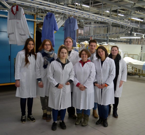Wir gingen nun gemeinsam auf die reine Seite, zu den Mangelstraßen, den Faltmaschinen und dem Tunnelfinisher. Das Wäschelager folgte als nächstes. Als letzte Station wurde uns sowohl die Qualitätsprüfung als auch die Näherei gezeigt. Bei der Qualitätsprüfung wird jedes Wäschestück von einem Mitarbeiter auf Flecken oder Schäden begutachtet. Sofern Flecken oder Schäden entdeckt werden, werden diese markiert, und an die jeweilige Nähstation geschickt. Zum Schluss wurden auf Kosten des Hauses zum Mittagessen eingeladen.