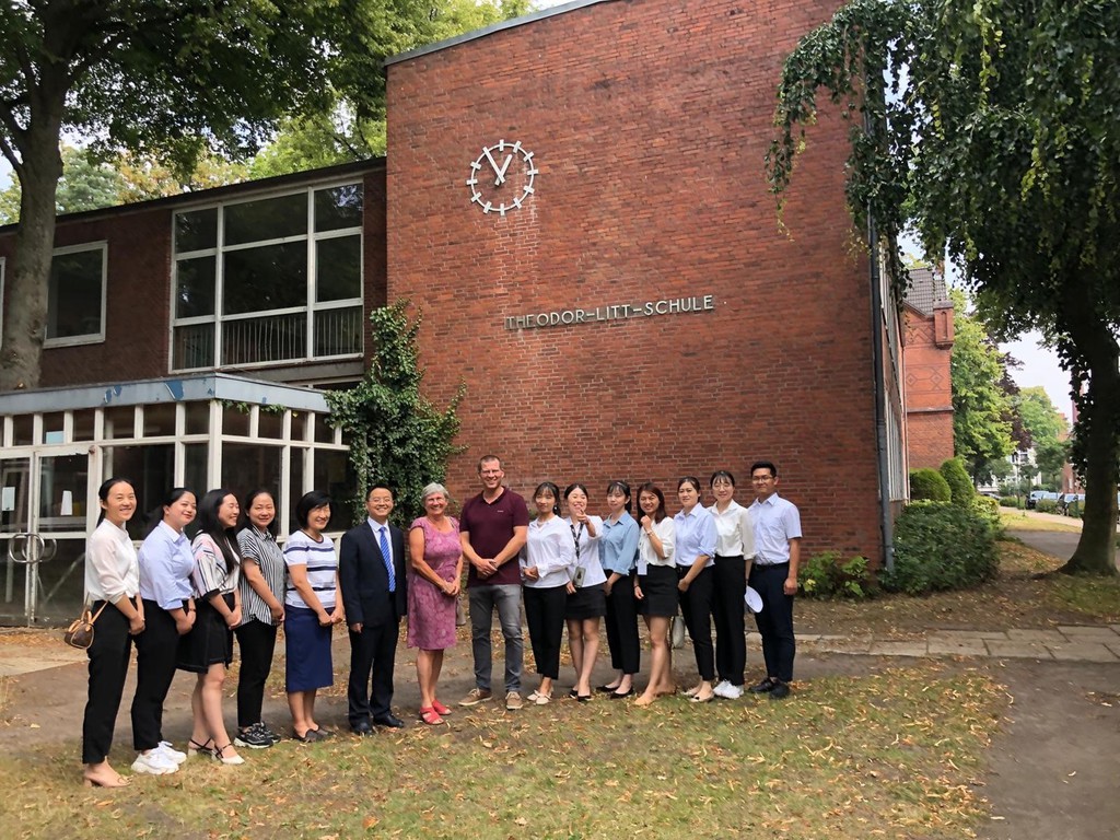 Organisiert wurde der Besuch von Xia Huang, Geschäftsführerin der CDBB Beruf & Bildung GmbH aus Düsseldorf, die Kontakte zwischen beruflichen Bildungseinrichtungen in China und Deutschland knüpft und schon länger mit der TLS zusammenarbeitet. So kam es auch, dass die ehemalige Schulleiterin und Geschäftsführerin Anneke Schröder-Dijkstra die Gruppe begrüßte und während ihres Aufenthaltes begleitete.