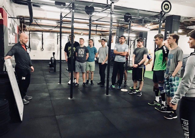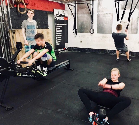 Im Anschluss durften die Schüler während einer einstündigen CrossFit Trainingseinheit an ihre Grenzen gehen und ihre Teamfähigkeit unter Beweis stellen. Auf dem Programm stand eine bunte Mischung funktioneller Übungen wie Rudern, Ski fahren, Schlitten schieben, Sit-Ups, Liegestütze, Ausfallschritte, kurze Sprints und einiges mehr.