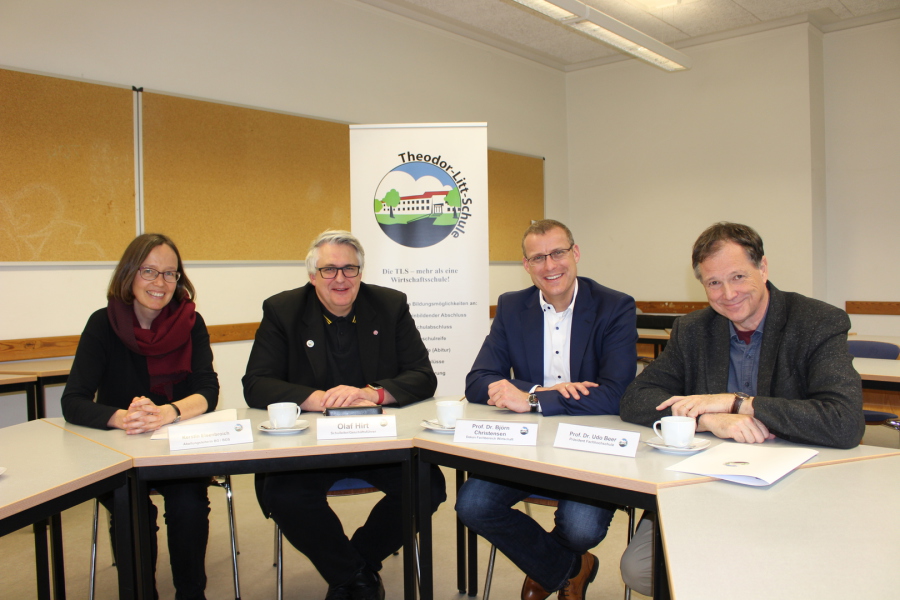 Die Fachhochschule (FH) Kiel und die Theodor-Litt-Schule als Regionales Berufsbildungszentrum (RBZ) der Stadt Neumünster arbeiten künftig enger zusammen. Heute (10. März 2020) unterzeichneten die Beteiligten in Neumünster einen Kooperationsvertrag. Damit können sich Absolvent*innen des Beruflichen Gymnasiums, Fachrichtung Wirtschaft und Berufliche Informatik, schulische Leistungen auf ihr Studium der Betriebswirtschaft am Fachbereich Wirtschaft anerkennen lassen.