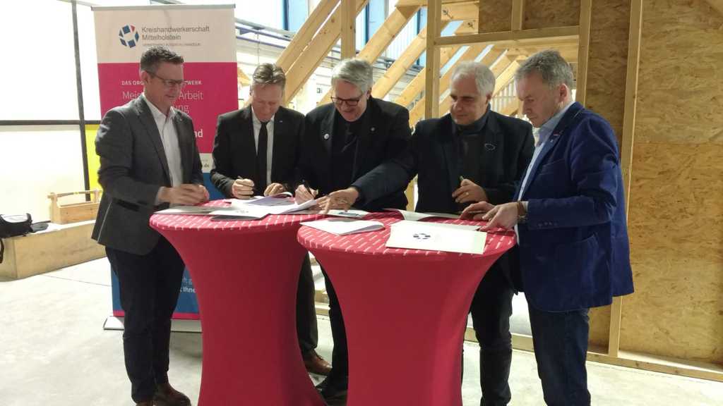 Mit dem Ziel dem Fachkräftemangel entgegenzuwirken und jungen Menschen berufliche Perspektiven aufzuzeigen, haben die Kreishandwerkerschaft Mittelholstein und die drei Regionalen Berufsbildungszentren (Theodor-Litt-Schule, Elly-Heuss-Knapp-Schule und Walther-Lehmkuhl-Schule) der Stadt Neumünster am 21. Januar 2020 im Hause der Kreishandwerkerschaft eine Kooperationsvereinbarung unterzeichnet.