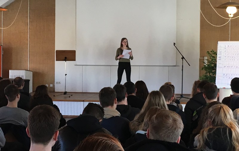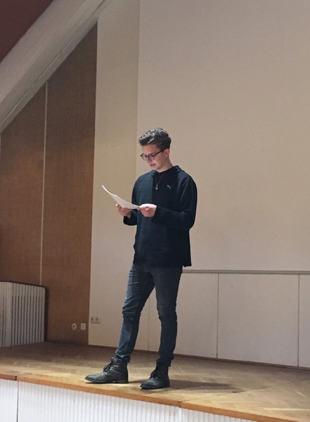In der Projektwoche haben wir in der Schule wie auch zu Hause konzentriert gearbeitet, um am Ende tolle Ergebnisse abliefern zu können. Diese haben wir an zwei in Form eines echten Poetry-Slams vor geladenen Schülergruppen präsentiert, ganz nach dem Motto: „Von Schülern für Schüler“.