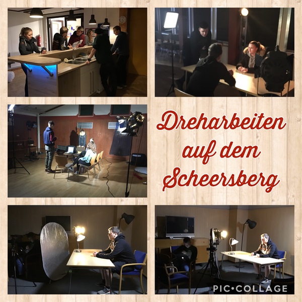 Seit Montag, 16.12.2019 befinden sich 16 Schülerinnen und Schüler des 13. Jahrgangs auf dem Scheersberg im Norden Schleswig-Holsteins auf einer kreativen Kursfahrt. Am Ende der Woche werden die Schülerinnen und Schüler je Kleingruppe einen eigenen Kurzfilm selbst produziert haben: Von der Idee, über das Drehbuch, das Filmen bis hin zum Schnitt liegt alles in den Händen der jungen Filmemacher. Angeleitet und unterstützt werden sie auch in diesem Jahr von dem altbewährten Team bestehend aus den Scheersberg-Mitarbeitern Ingo Mertins und Paul Krellenberg, den professionellen Filmemachern Johann Schulz und Torben Sachert sowie unseren beiden Lehrkräften Nina Ziervogel und Kathrin Cordsen.