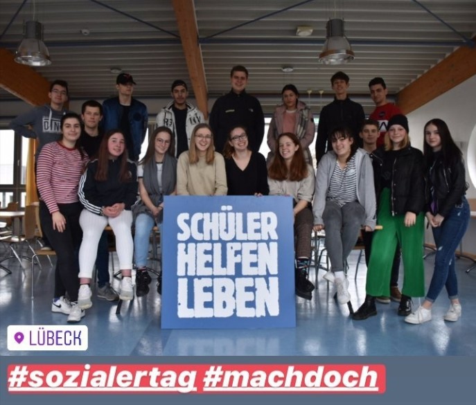 Gemeinsam mit Schüler Helfen Leben sollten vier unserer und Schüler*innen aus ganz Deutschland überlegen, wie der Soziale Tag noch stärker bzw. bekannter gemacht werden kann. Sie sollten die Planung aktiv mitgestalten. Um aber an dieser Konferenz teilnehmen zu können, waren die 4 interessierten Schüler*innen, Claudia, Kiara, Steven und Mohammed aus der AVE 19a, auf Hilfe angewiesen. Sie selbst engagieren sich gerne für soziale Projekte und arbeiten, seit der letzten Weihnachtsfeier an unserer Schule, eng mit Schüler Helfen Leben zusammen. Aber so eine Fahrt nach Lübeck und die Unterkunft sind nicht kostenlos und so kam die KAF 18a mit „ins Spiel“.