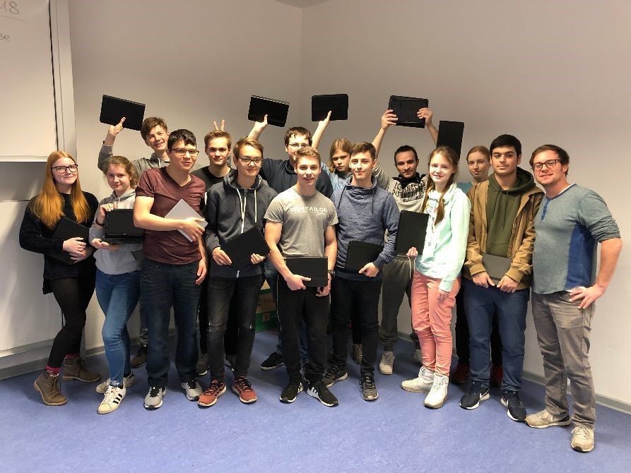 Kurz vor den Weihnachtsferien war es endlich soweit. Alle 16 Schülerinnen und Schüler der 11. Klasse im Oberstufenprofil Wirtschaftsinformatik erhielten von ihrem Klassenlehrer Herrn Friedrichs und ihrem Mathematiklehrer Herrn Angres ihre Tablets ausgehändigt. Diese sollen von der Klasse des Beruflichen Gymnasiums in den nächsten zweieinhalb Schuljahren bis zum Erreichen der Allgemeinen Hochschulreife genutzt werden. Nachdem die Theodor-Litt-Schule im Dezember als Digitale Schule ausgezeichnet wurde, ist dieses ein weiterer Schritt in Richtung Digitalisierung von Schule und Unterricht.