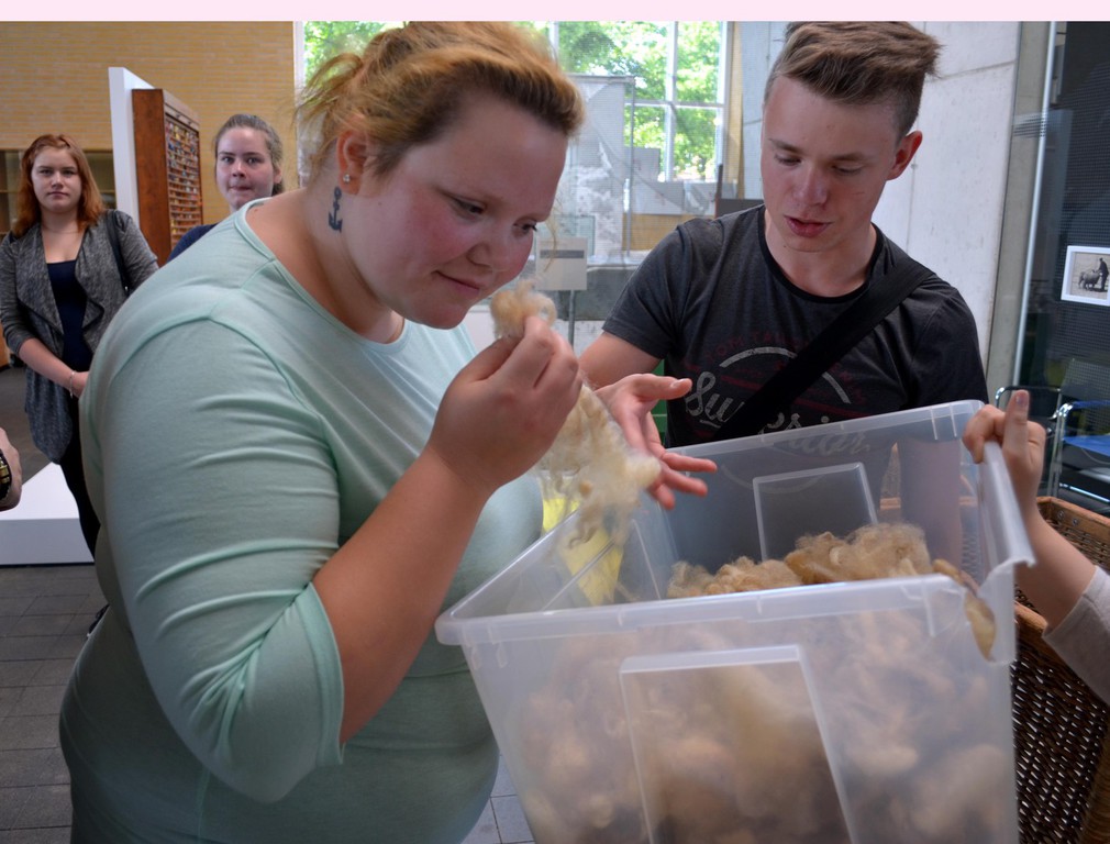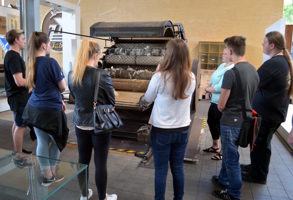 Für die zukünftigen Textilreiniger/-innen der Theodor-Litt-Schule aus Neumünster ging es Anfang Juni in das Museum für Tuch und Technik in Neumünster. Die Schülerinnen und Schüler, die sich im zweiten Ausbildungsjahr befinden, nahmen an einer Führung teil und erhielten einen Einblick sowohl in die Herstellung eines Garnes als auch in die anschließende Gewebeherstellung. Interessant war im Anschluss die Durchführung einiger Versuche, um zum Beispiel die Reißfestigkeiten von Woll-, Baumwoll- und Polyestergarnen zu testen oder mittels Brennprobe unbekannte Faserstoffe zu analysieren.